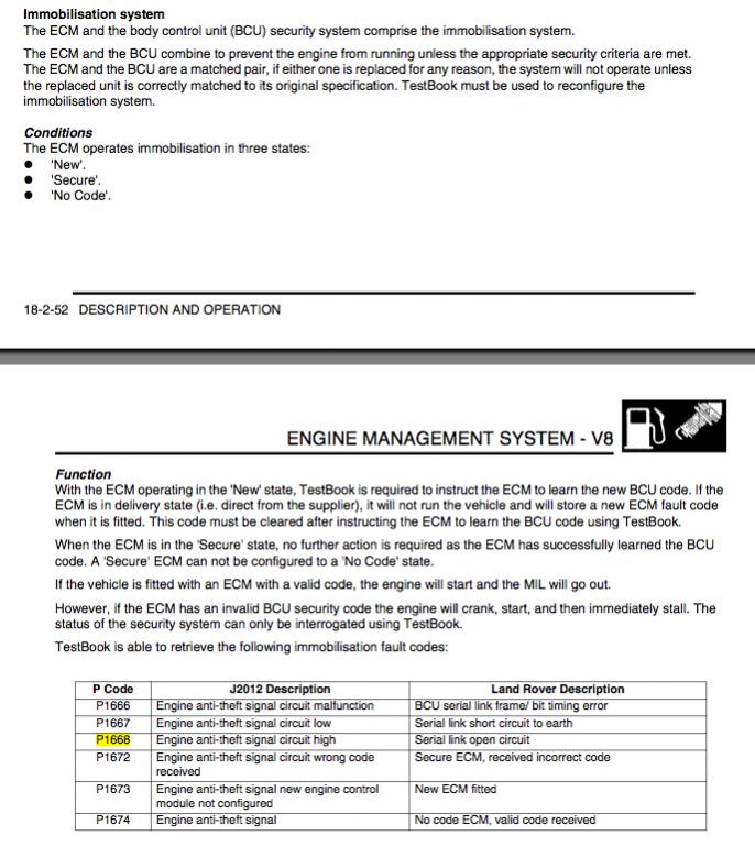 Here is the info on P1668 from the shop manual. It sounds like you have some sort of a ECM and BCU mismatch. Have you had either replaced?