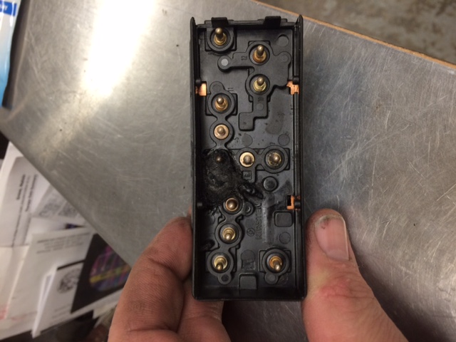 Since the purchase, I replaced all of the brake pads and front rotors. The front brake needed replaced but the back were still really good. Changed out the front, center, and rear diff lubes and had the brake system and tranny fluids flushed. The LH seat switch was fried and replaced it with one from ebay..$23 easy fix. Replaced a burnt out dash bulb and drained 1/2" of water out of the LH head light assembly. Not sure how that got in there. Waiting for a RH window regulator, the current one is trashed. Everything else appears to be working. Have had a P0420 code pop up twice now if I get on throttle hard on bank one (RH side I believe) I suspect the cats may need replaced. It does have a slight ticking once it's warmed up. Sounds like a common problem. Will have to investigate in the future where it's comming from. Attached is a pic of the seat switch. It was definitely chard!