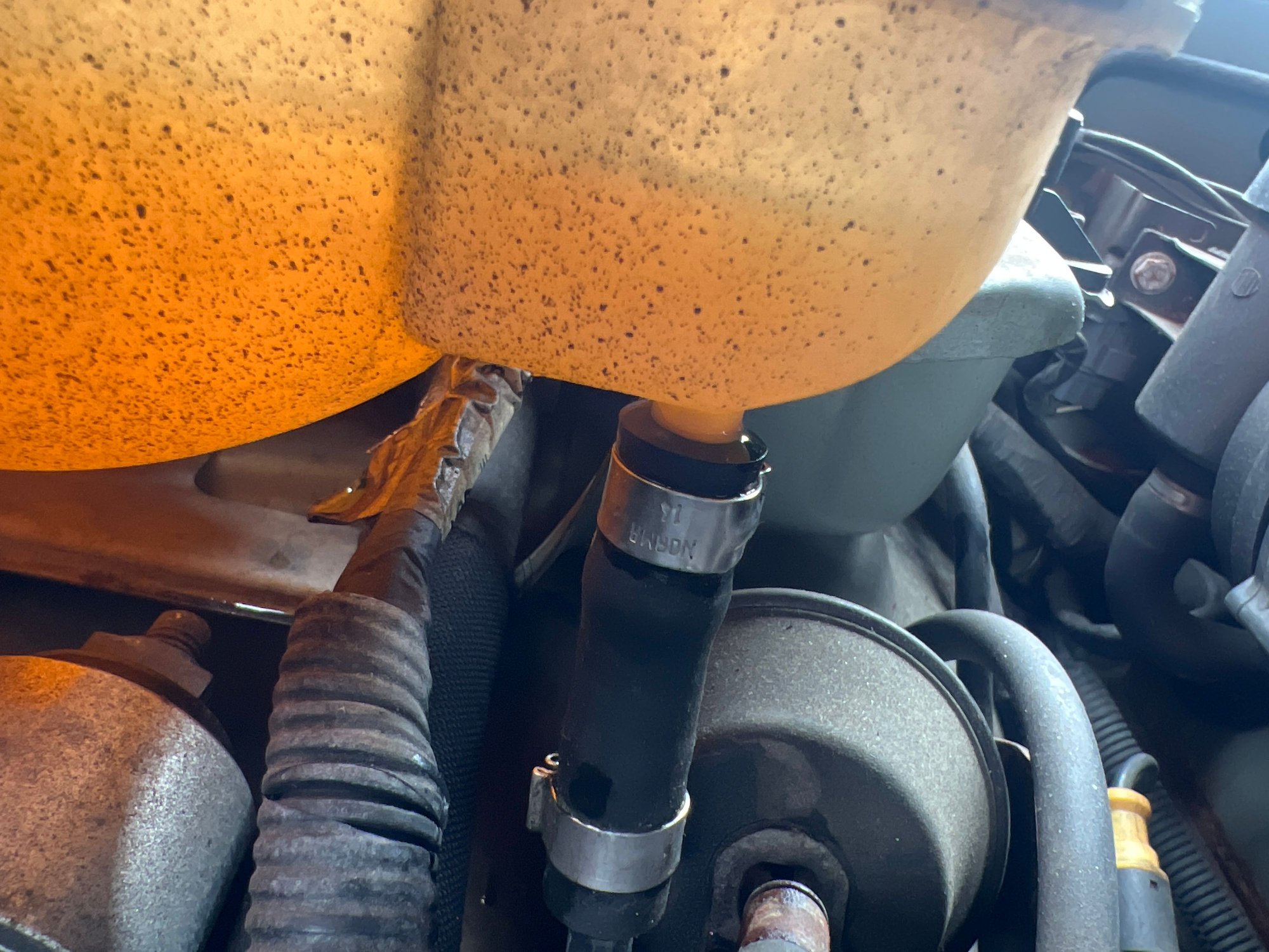 You show a pic of the smaller nipple with the line that runs to the throttle body heater. If it's cracked at the base of that nipple, this is your opportunity to bypass the TBH, at least temporarily.