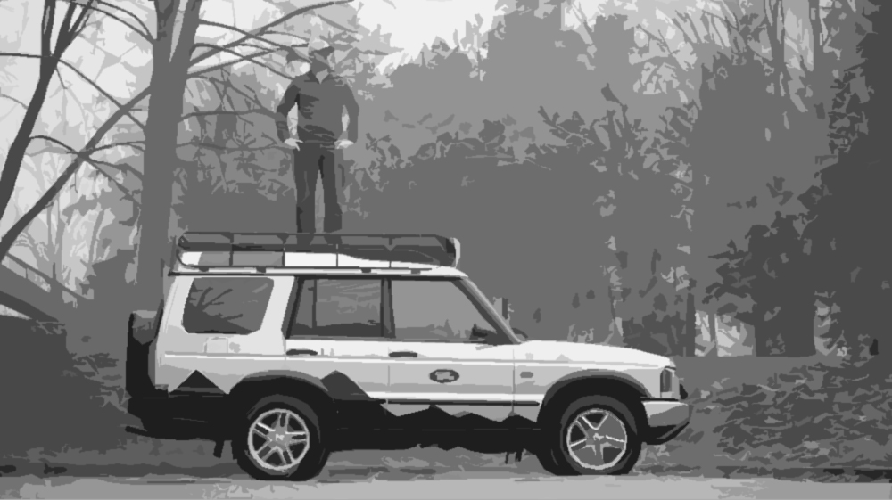 1. The mountains on the side are inspired from the modern Expedition model of the Land Rover Discovery. They were made by myself using a Carbon Fibre sticker that I bought at Canadian Tire for $14.