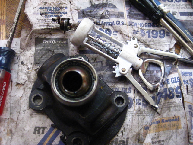 Don't ask what the best angle is for that one - I'm still in shock over how hard it was - especially after having knocked down some bearing needles in the ball with the spring. I got them back into position with patience and grease, but this is the point where I would recommend using the beer.