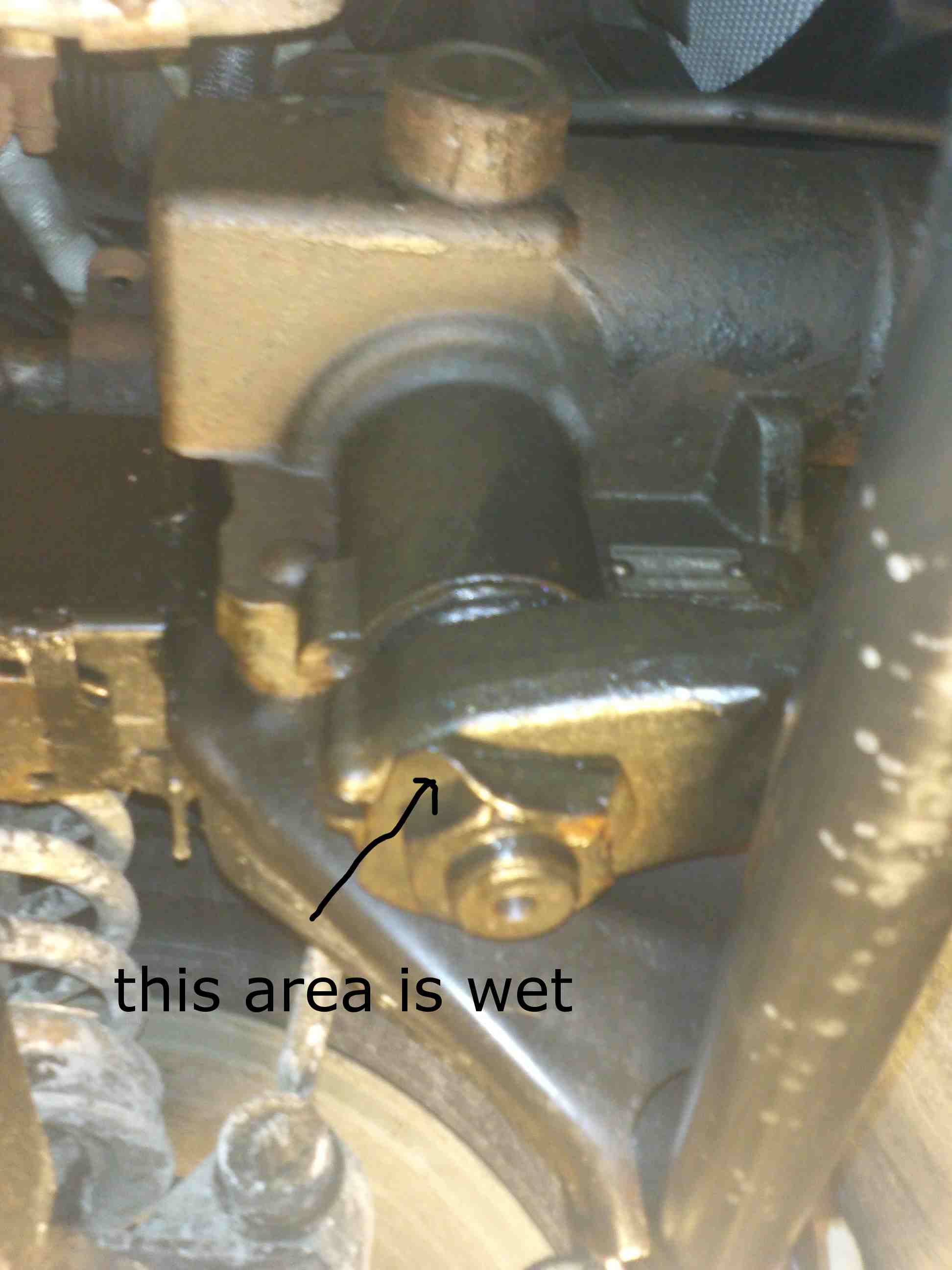 3. The area below the stearing box, where the big screw connects to the drop arm is always wet, no leak from the power steering hose, I don't know if this area can leak or if it is old fluid from my powersteering leak. I did use quite a bit of degreaser before. No dripping just wet (Pic #3)