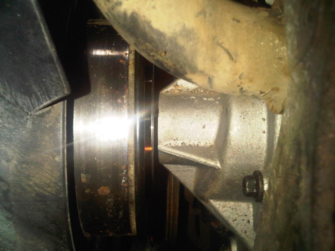 I dont know. I was puttihng stuff back together and I didnt realize until I was putting the serpentine belt on that the pulley was backward. I know I was only putting the fan on to hold it in place and hand treaded it on there for a few threads. The next time I looked at it the nut got threaded into the pulley. Guess I was turning the fan while I was screwing with the bolts on the alternator. i think...