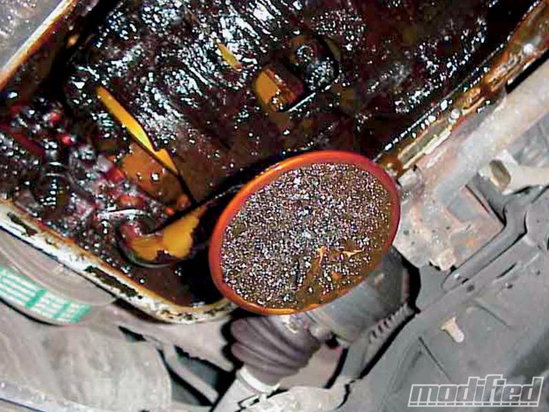 aspiration of debris by the pickup tube ( oil pump ) from the HG job = persistent oil light.