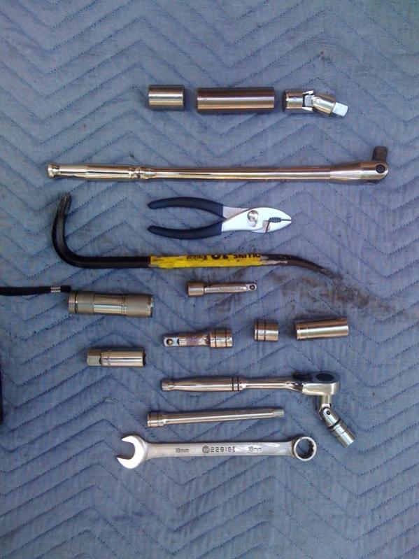 The tools you will need are pictured here. I used a combination of 1/2" and 3/8" sockets. The 1/2" was so i could use a breaker bar to loosen the nuts and then 3/8" to remove them as it was easier to get around. You will need the attachments i pictured so you can angle them in place. It would help by using a break free penitrator the night before to help loosen the nuts. The open end wrench and small plyers are used for the top nut on the drivers side mount. It's the only tools that would fit in that space and you can only get 1" turns. It was a big pain in the *** so do this mount last.