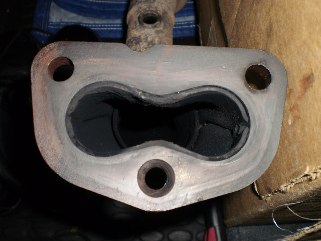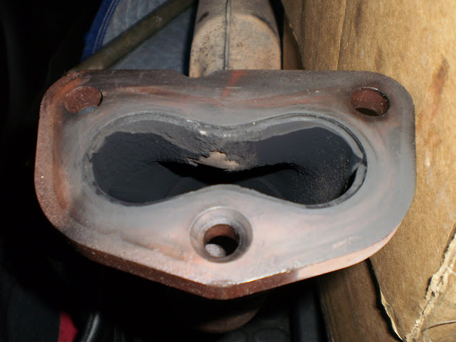 1. Exhaust was welded and repaired ($25). Stud broke off inside manifold so I had to drill it out and re-tap it and everything went smooth. Used two new gaskets and two new studs. I tapped the Y pipe with my rubber mallet a few times and nothing came out.