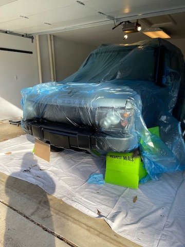 And now it's time for painting. Happy to give more details on specific products if anyone requests but I used 400 grit sand paper and isopropyl alcohol on the whole bumper to prep the surface. Taped it all up. Used two coats of plastic adhesion promoter and like 5 or 6 coats of SEM trim paint. The SEM paint was fantastic - first time spray painting and it laid really well with no running.