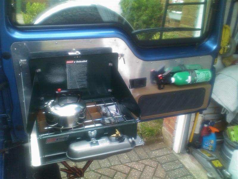 Well, finished of my rear door panel this weekend. Took a lot longer than expected by the time you mess around with all the "little bits" and bobs. Lots of bits to make etc......but Im pretty happy how its turned out. Me and a friend did the same design on his car a while back, and after seeing how useful it was when out on the trails, especially for making a cuppa!!! with the coleman dual fuel stove..... I just had to knock up another one to