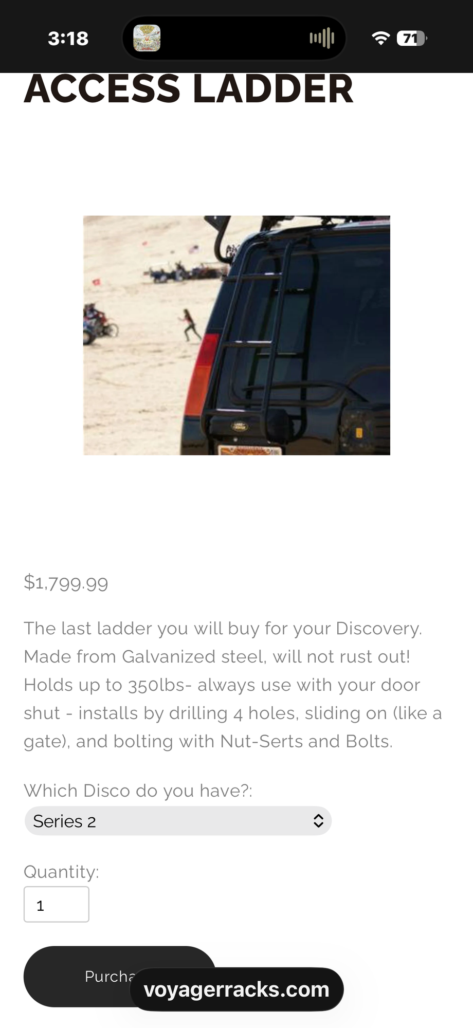 I like Voyager products, but their prices are completely out of control. I had their rack a ladder on my last D2 and as everyone says, it is extremely beefy and I used it a good bit to get on the rack. However, their costs now for a rack and ladder are more than most Discos cost. Kinda dumb.