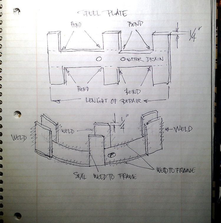 Its quite easy and fast. I do this to the other every 2 years. But still got rusted. My other truck has flaky rust. Have not examine thoroughly yet but here is my sketch of my plan from a 1/4 steel plate to add beef.