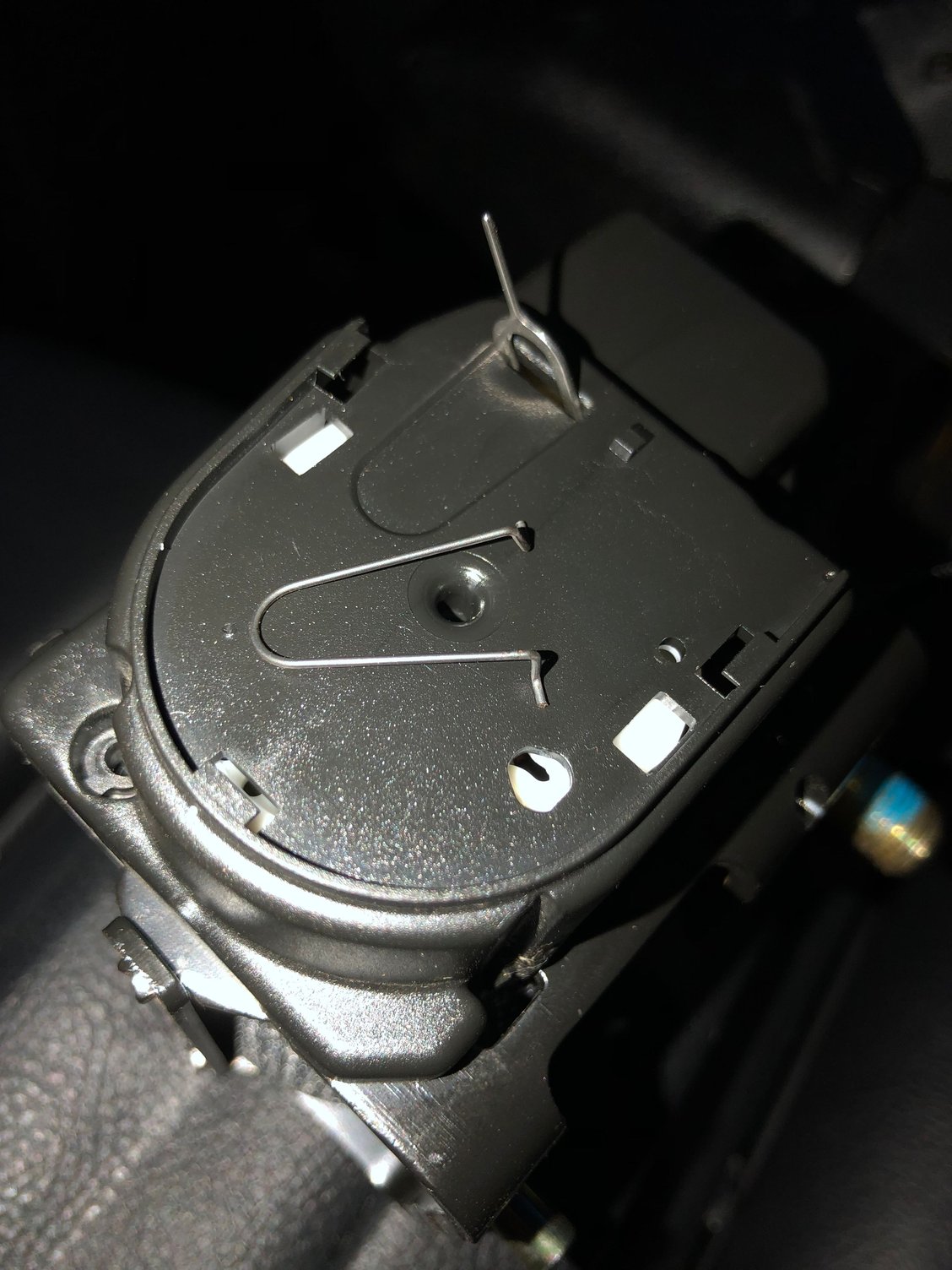 Some extra photos to help see what’s going on under there and see what you’re trying to accomplish by sticking the pin in there. Finally got mine released, amazing how that tiny plastic piece can be so strong.