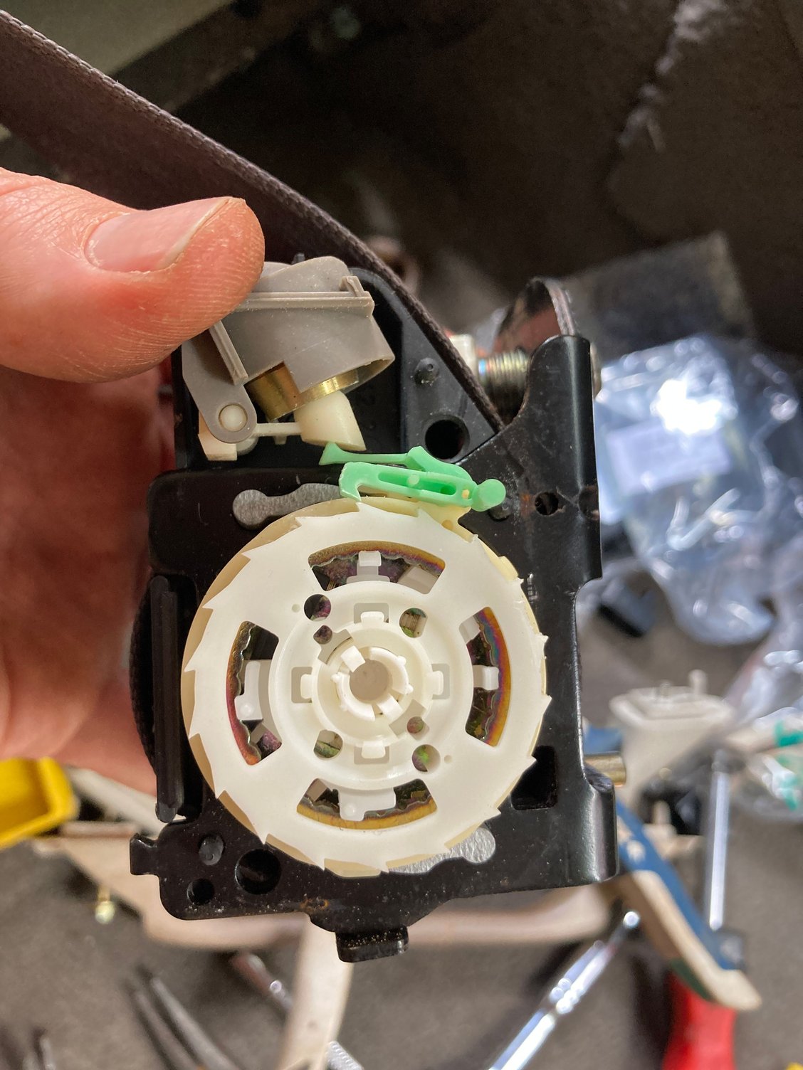 The back seat (middle row for my truck) driver-side seat belt has retracted and locked, it won't release enough to even re-fasten it to its mount. It's always worked perfectly, and I didn't do anything crazy with it... Am I missing something? I've completely removed the entire assembly from the truck now, allowed it to retract as far as it will go, and still it will not release for me to unwind it and re-install it.