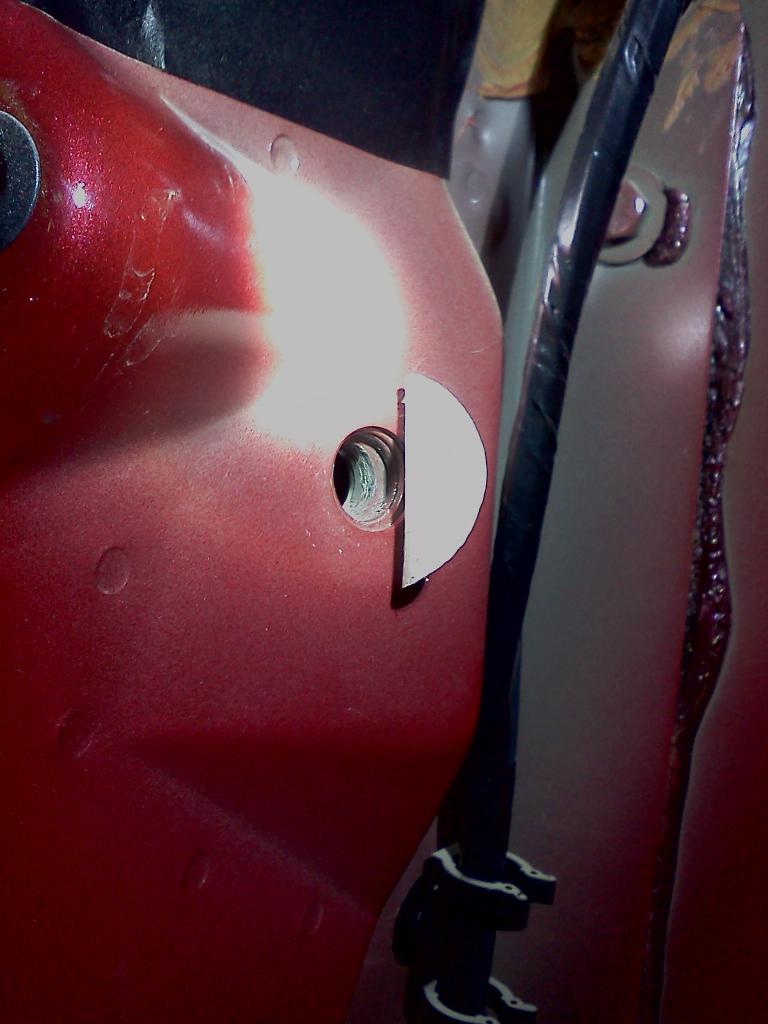 The top mount for the seatbelt is (I think) where the arrow points, but as you can see there is no thread in it... Is this normal?