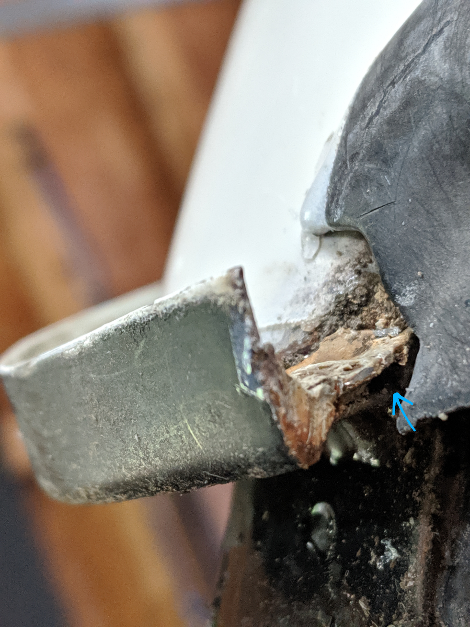 I think I finally found the true source of my leak. The water is rolling off the edge and through this opening at the end of the rain gutter near the windshield. I have some Sikaflex 295 uv on the way to reseal the entire rain gutter.