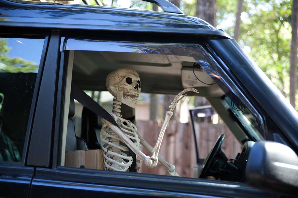 For the past week I've had my rig decorated for the season complete with a talking skull on the front bumper and Mr. Bones as my passenger. I've had some really funny looks from people in other cars as the pass me and realize who my passenger is!