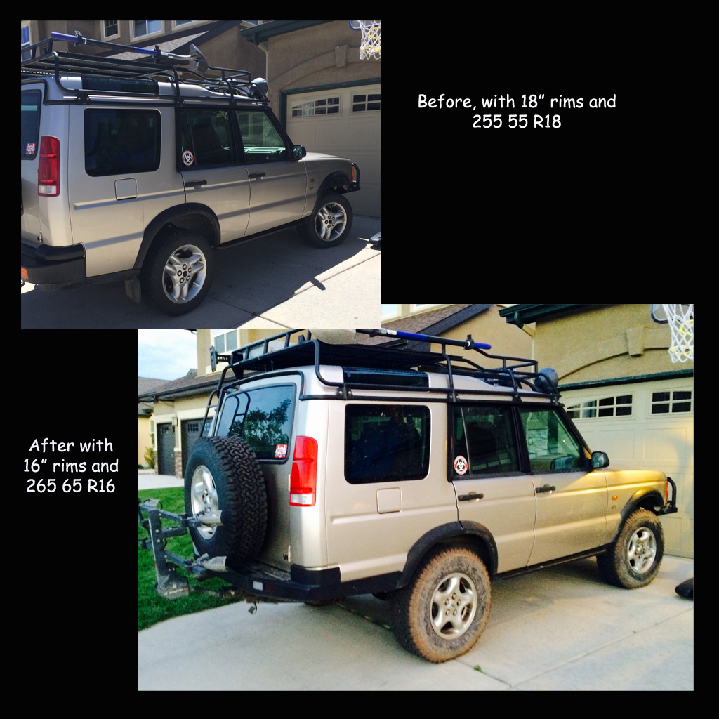 So, have been spending $$$ on the Rover for some time. Been out wheelin' and having a blast. I have just finished changing a broken rear diff, all rotors and pads and upgraded the wheels and tires from 18" 255-55-R18 to 16" 265-65-R16