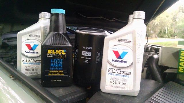 First change since purchase in mid November and 1,200+ of my miles. Prior to drain added Sea Foam to oil and drove per their recommendations. Used what was available in my lube cabinet for refill plus newly acquired filter. Snake oil was just there and thought why not, obviously don't expect any benefits and will monitor for possible adversities.