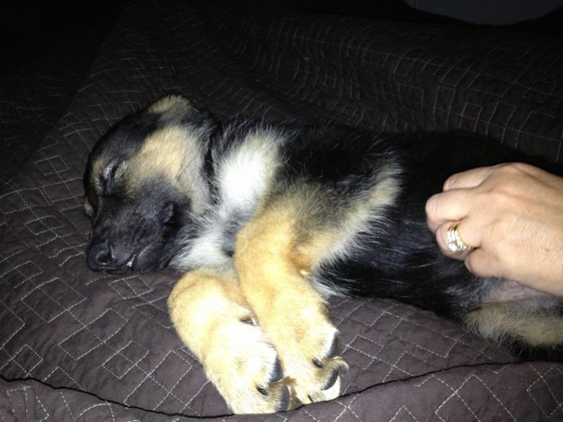 She's a two month old German Shepherd name KayLeigh. Since our three daughters are grown and moved away, we decided to do it again... This one is a bit more work though.