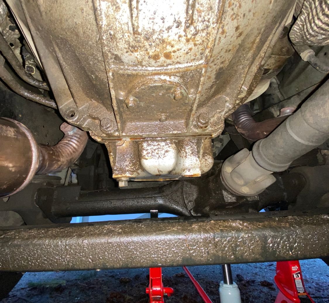 on the leaking part, its actually towards the front of the truck, just ahead of the transmission box. It looks loke leaking at the seams. Any idea if I should take it apart( if so will try all easier options first). But just curious at this time if this is something I should be worried about urgently and what are my options