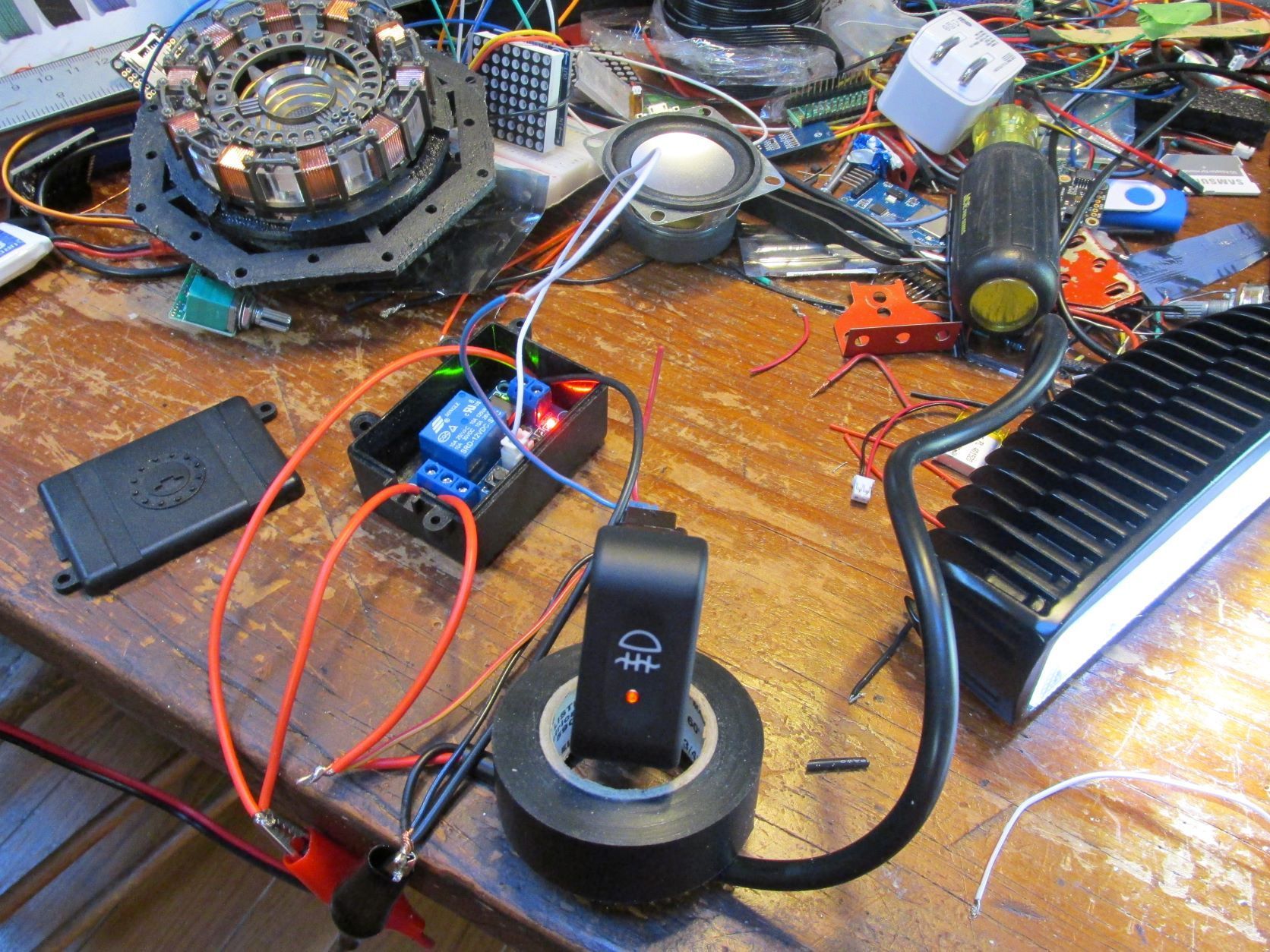 This is a great circuit because the freewheel diode and a relay are already built into board. You can get latching 500ma boards for less, but then you have to build the rest of the circuit. Also, the relay handles 10A at 12v, which will run most small accessories. If you want to run say ... a pair of 130 watt 12v spotlights like me, I then use this circuit board as the pilot relay to operate an appropriate sized relay. Also, this little board can be operated via the ground trigger built into the Disco switch (see drawing). You can box the whole board into a small plastic case...It unlatches when power is cut....This led light draws less than 1 A .....easy peasy....