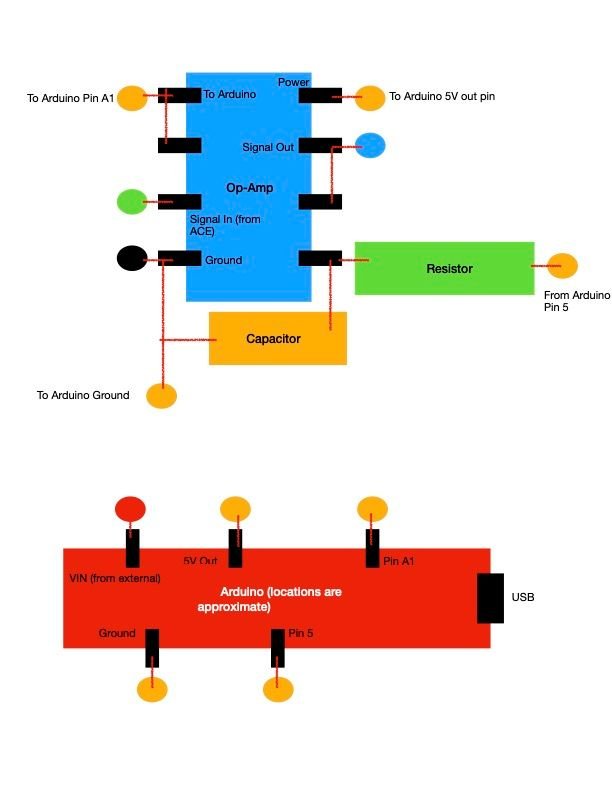 Signal In (green) to op-amp, other side - interrupt the ACE LR TS wire, connect to side from box