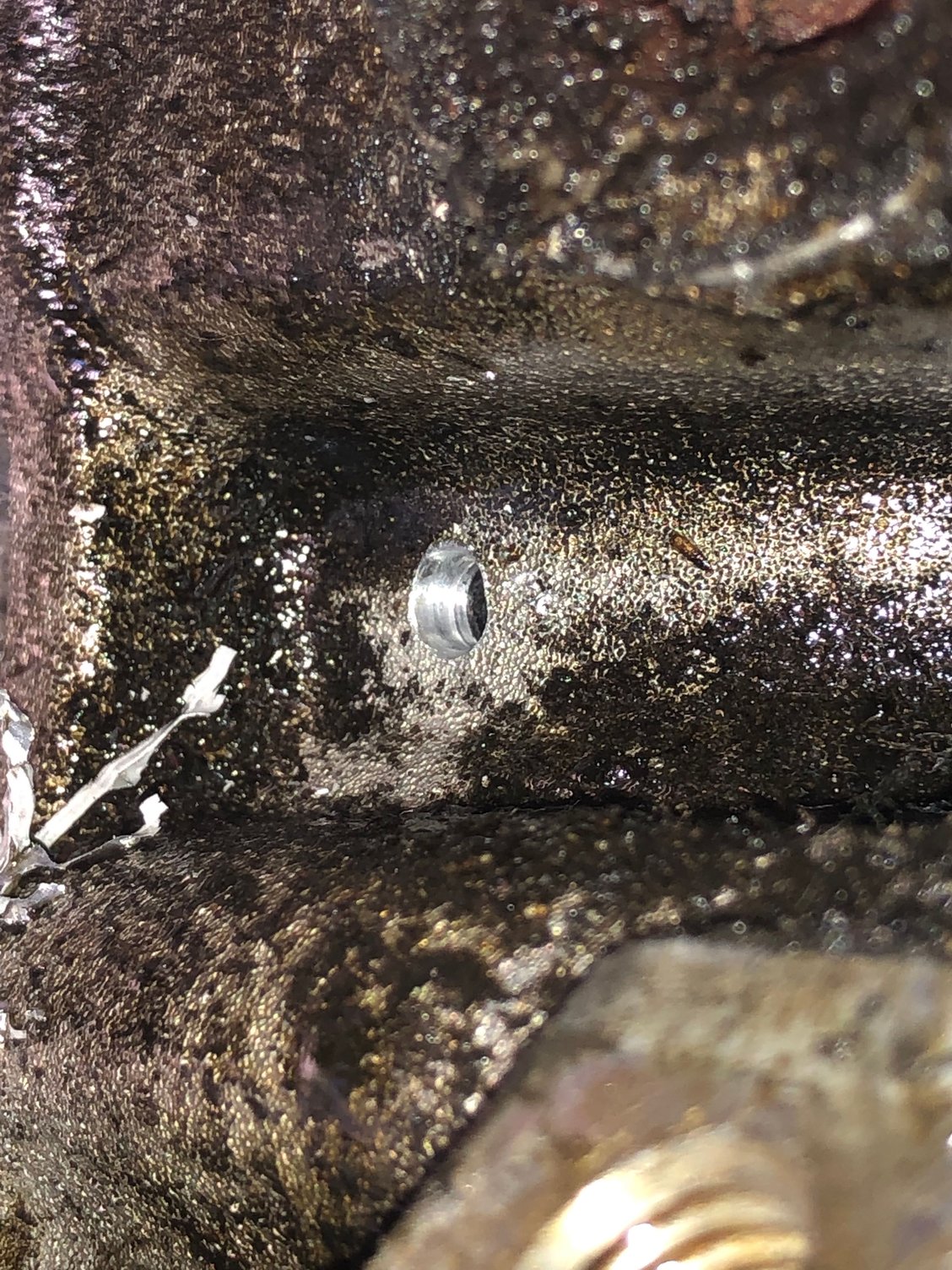 I pinned two of the cylinders today. Have videos and pictures and will do a before and after. Cylinder wall of completed threading Installed with threaded stud in