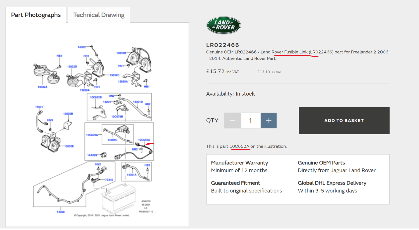 The part # you found is for the WIRING LOOM to a "fusible link" in the battery junction box. There are various fusible links in the vehicle. In your model there are fusible links to each one of the glow plugs in the BJB, for example, and there are others for other systems. But the battery system has exactly one fusible link, and it's a (if I remember correctly) a 150 amp link right at the positive terminal because it has to let enough juice through to turn the starter.