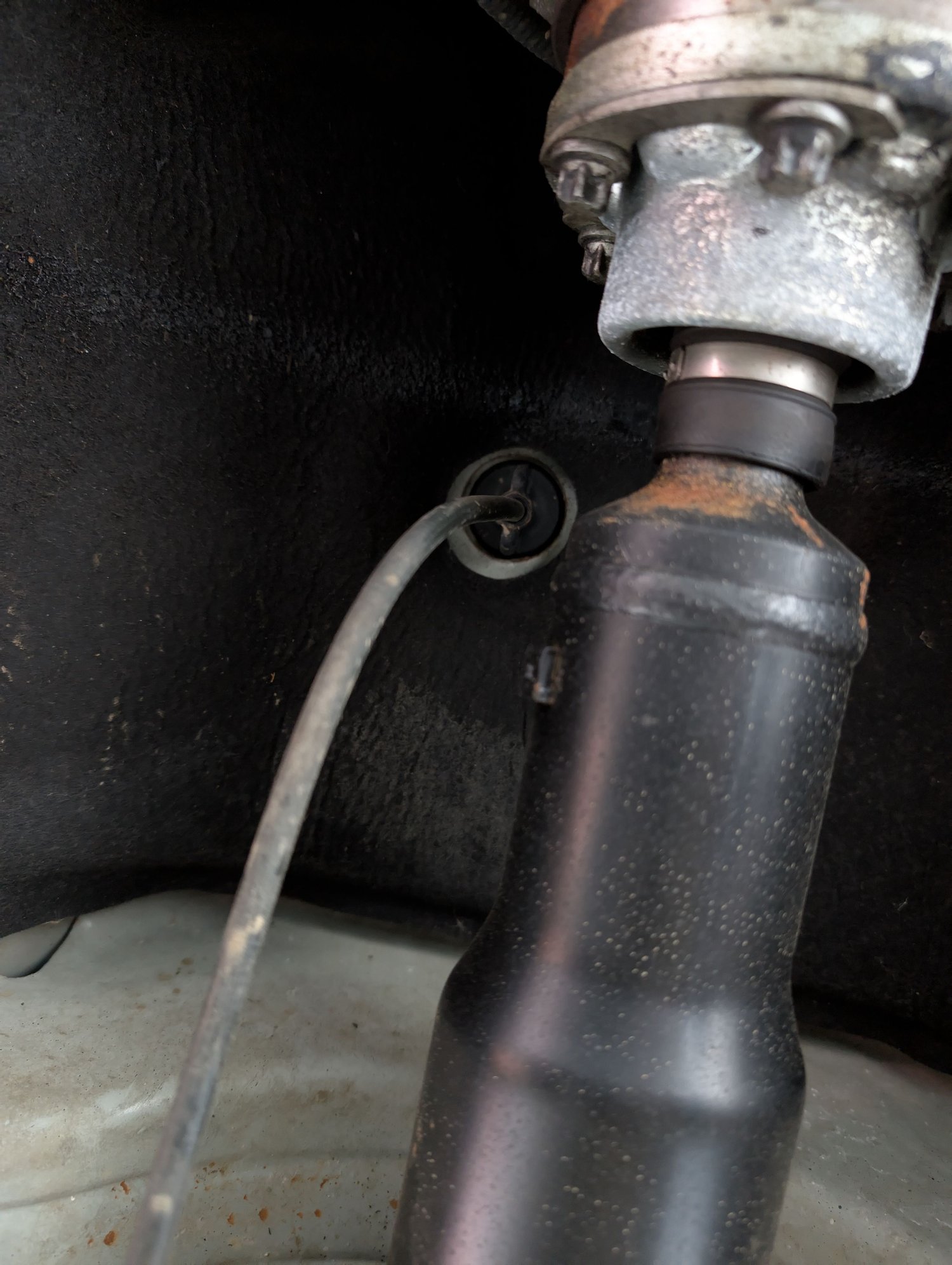 Any idea what this sheathed cable is that exits the cabin under the car and runs roughly in parallel with the drive shaft?