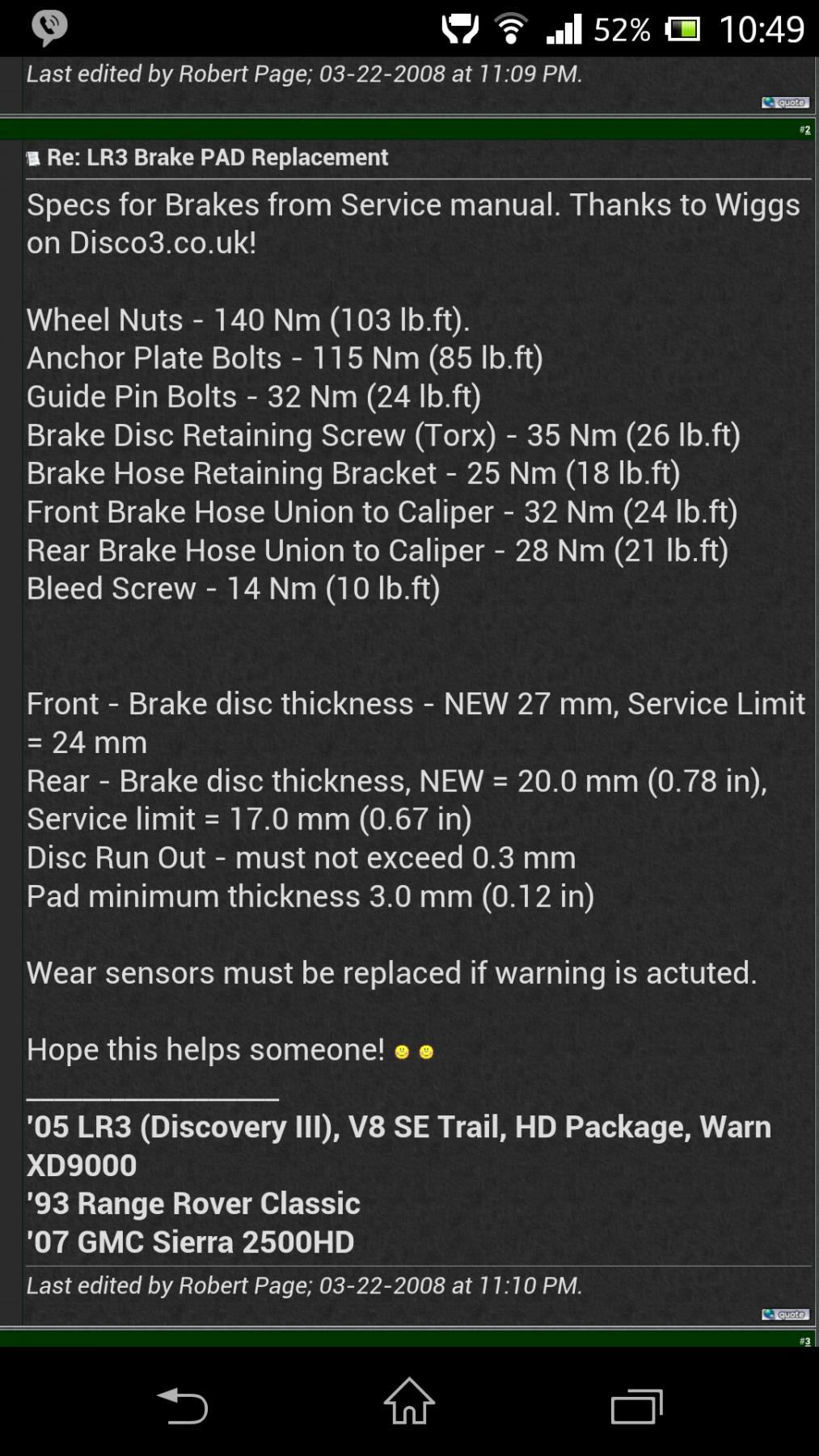 As for brake pads textar is what I put in, work great. I believe this is what LR uses anyway.