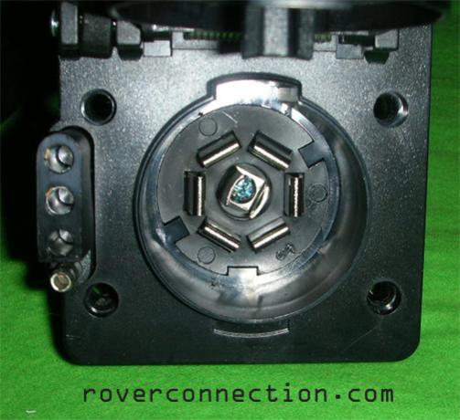 The other common connector is the 4 round pin flat connector that lacks any provision for electric brakes. That is what I expect you have on your Jeep and trailers. The flat four is included in the genuine LR part and probably as well in the AB "or equal". The order the circuits on the LR four pin is again the same as on all domestic pickups. If you have a different order on your trailer, then change it per my link as that is also what U-Haul uses. The jpg below shows the factory connector end on the rear of the 3 with the weather covers removed and includes both the round 7 blade and the 4 flat round pin connector in a single assembly.
