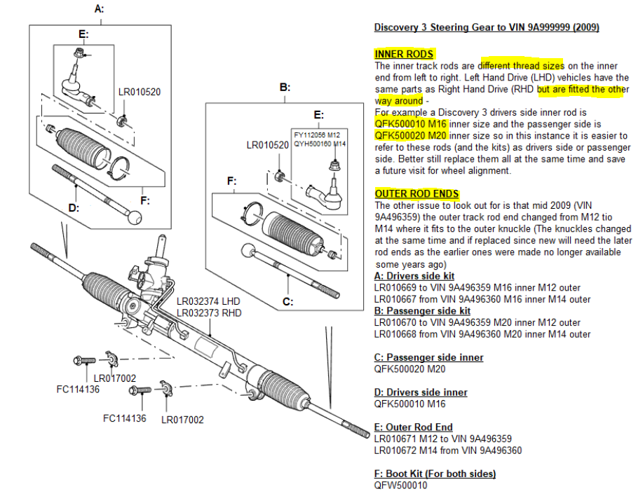 I have LR3 '06 V8 4.4L. I'm replacing the tie rods and bought the tie rod replacement kit from Atlantic British. We just got the parts and pulled out the old tie rods and the inner tie rod doesn't match up with the replacement part. The threaded part is narrower than the part we pulled out, see photo.