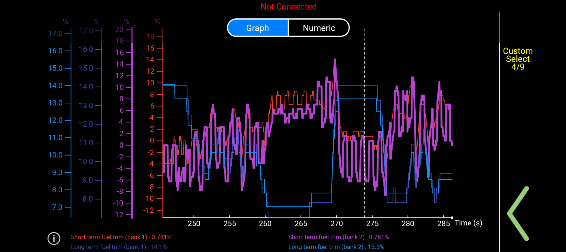 In my GAP tool, there are also short term fuel trim sensors that I can read and they give very strange values. They go between-0.781% to 0% constantly. There are no values in between. I'm not sure what this fuel trim sensor even is because I thought fuel trim was based on combinded readings from the MAF and O2 sensors to determine appropriate fuel trim.