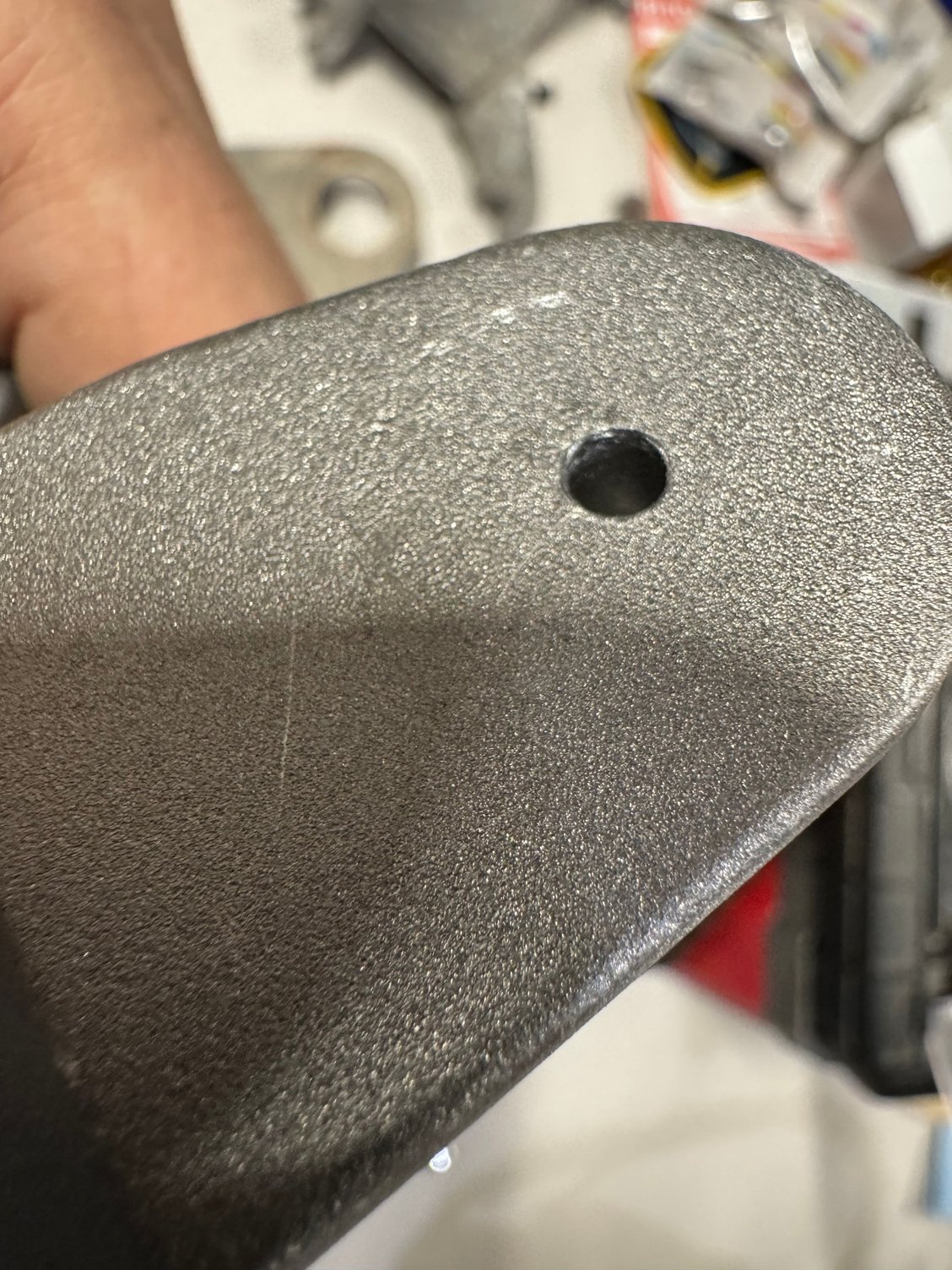 That hole has no threads, as you did you use the old screw to tap the threads. It was a bit perplexing until I got the screw out of what was left of my bracket.