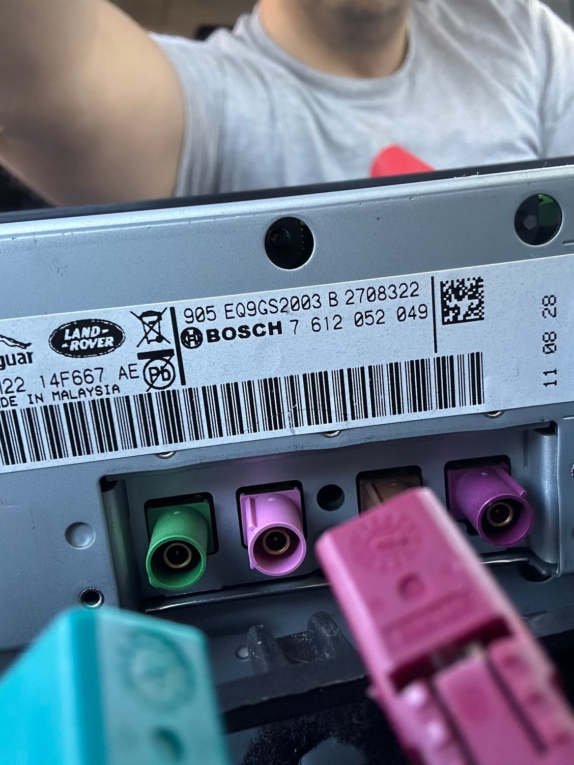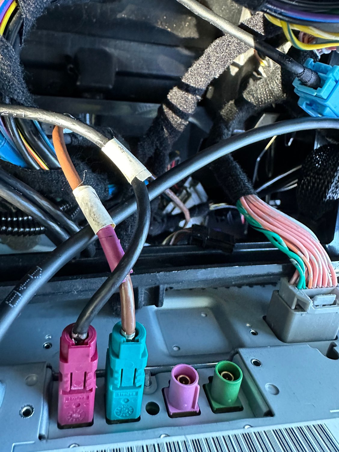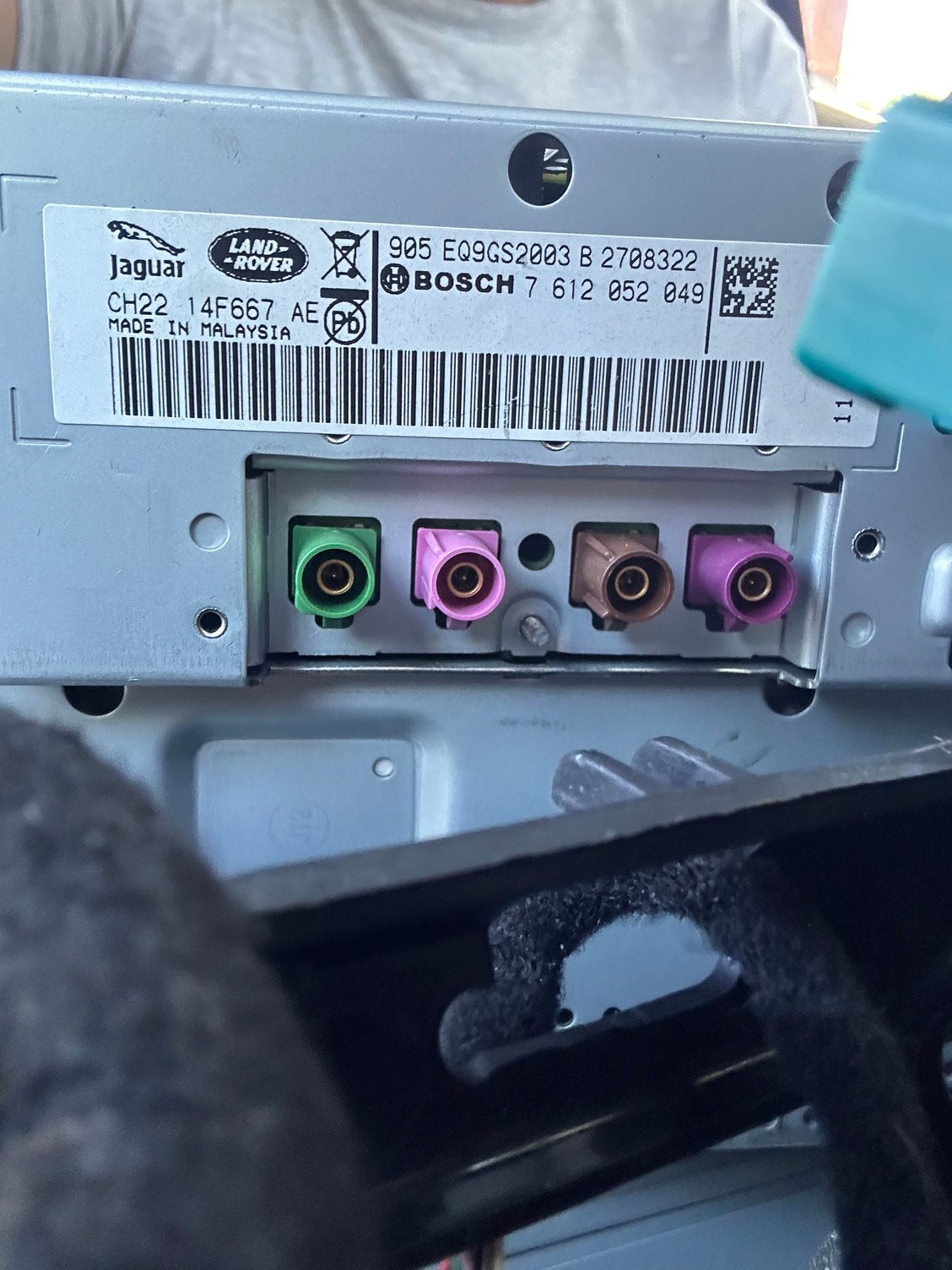 My only 2 issues - first, my partner took the cables out of the Bosch screen unit, so I didnt see what went where, and the plugs just dont match the colours of the head unit!! Attached is what I see, any chance anyone has a 2012 HSE and knows whats supposed to go where?? Or even what these coaxial connections go to?? Everthnig seems to work ok