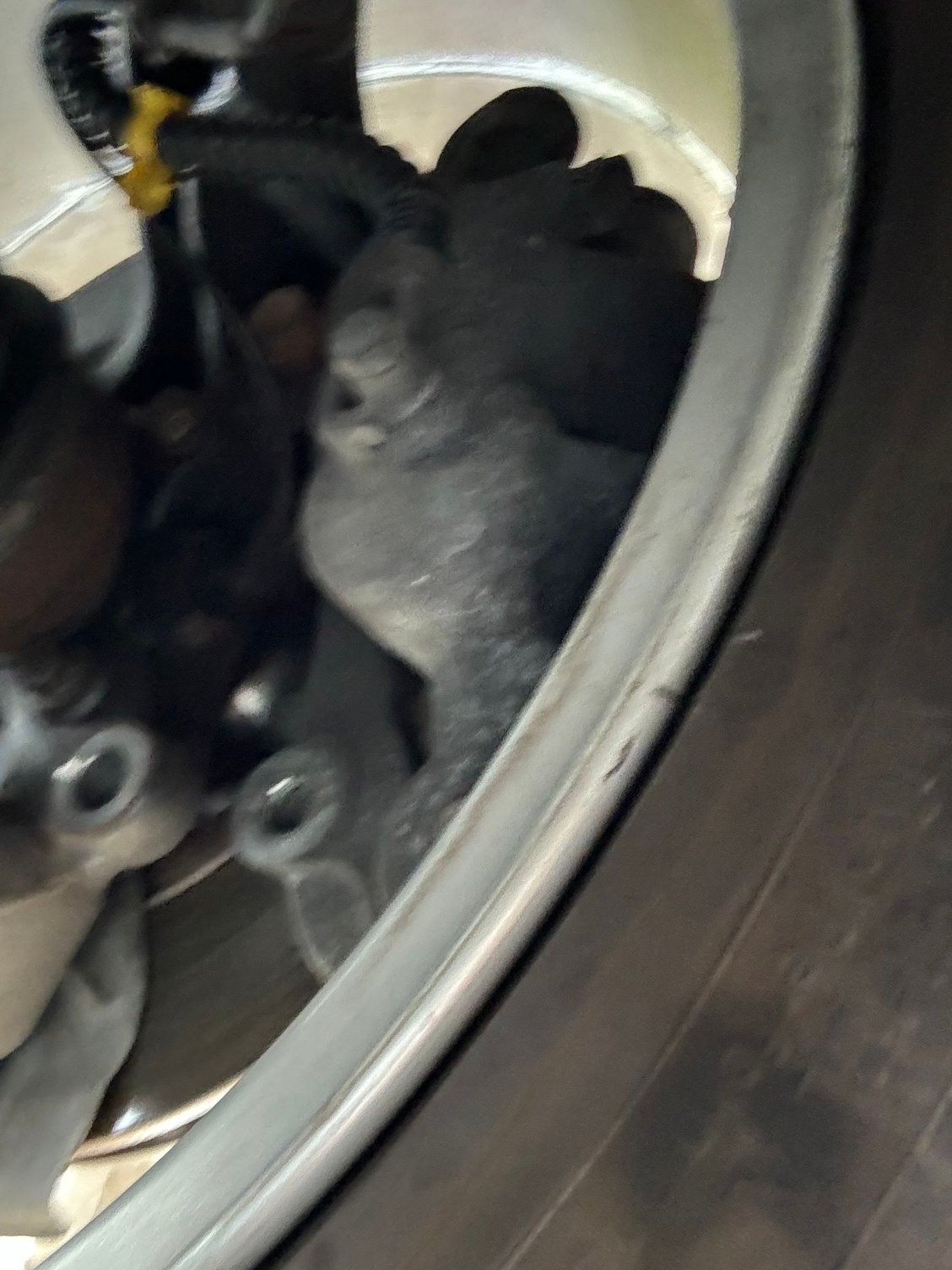 photo of wheel and photo of caliper and carrier sans bolt.