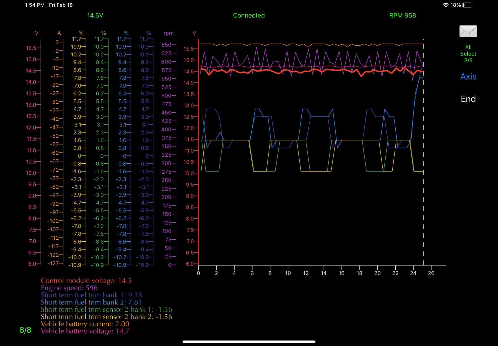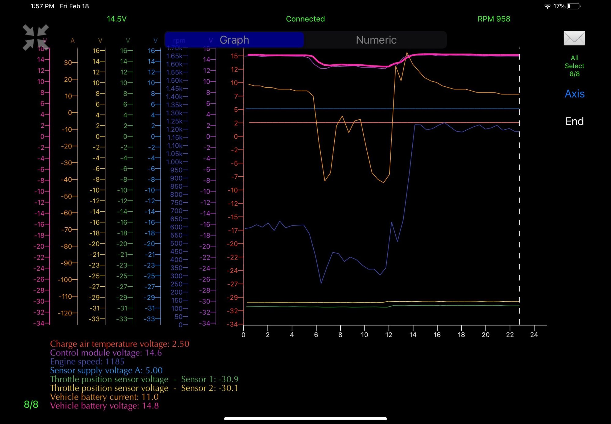 I also was able to catch two other problems. Not sure if they are related. When I go for a drive and then stop and put in park the Idle stays at 975. The target on the GAP sensor says 600.