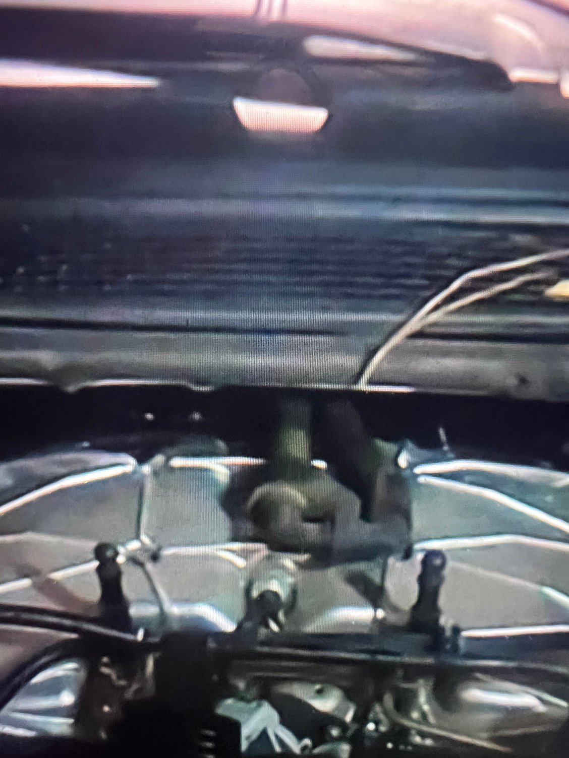 thats a symposer hose one end attaches to a pipe in the firewall and the other end to the symposer it introduces engine manifold into the passenger compartment so it sounds sporty , lol lol !!