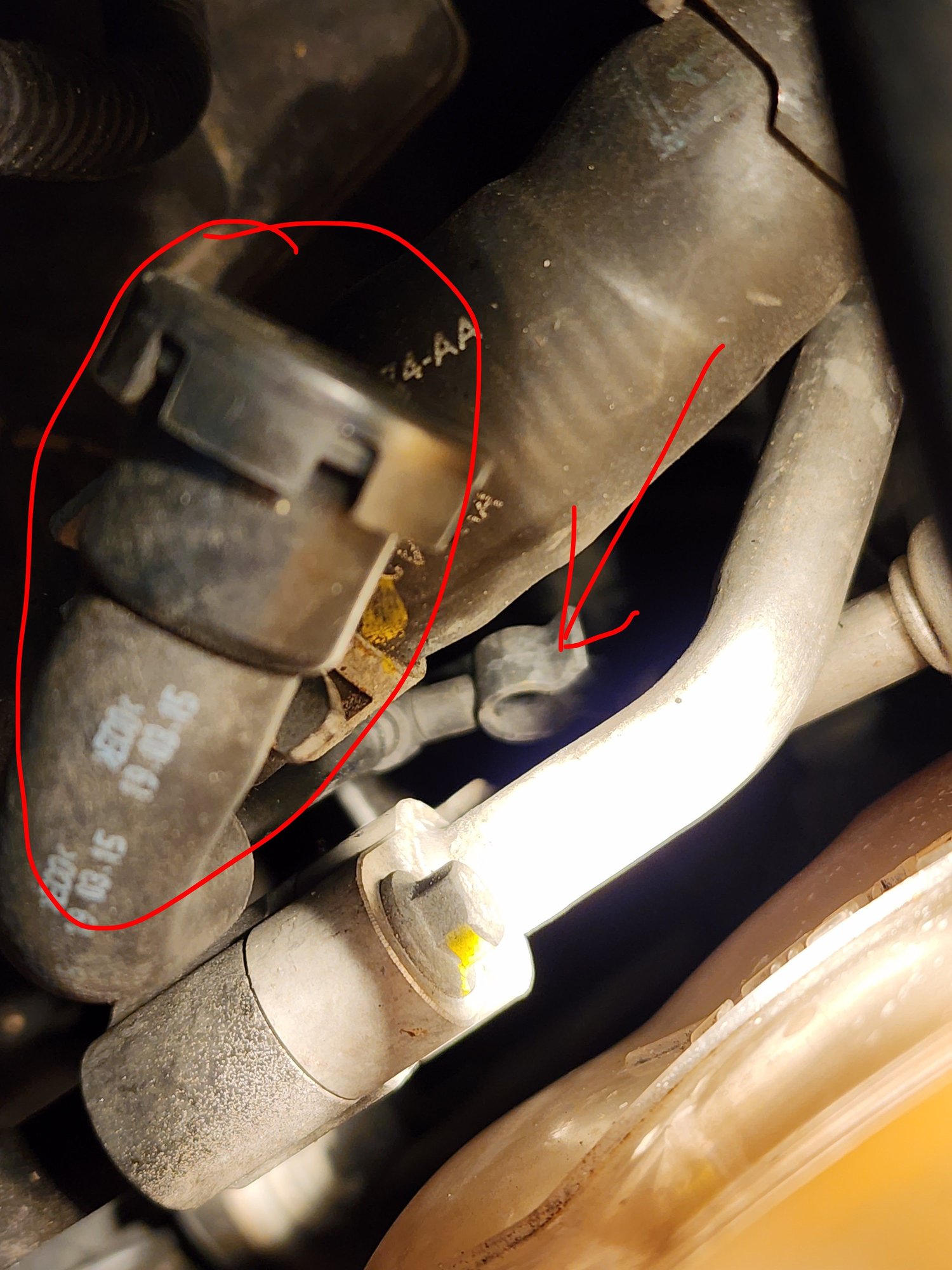 Was checking coolant level (still experiencing leakage after dealer replaced the water pump and some hoses & the belts). Can someone tell me what this hose end (circled) goes to/is for, and where the clip (arrowed) is supposed to be clipped onto so it isn't flopping around?