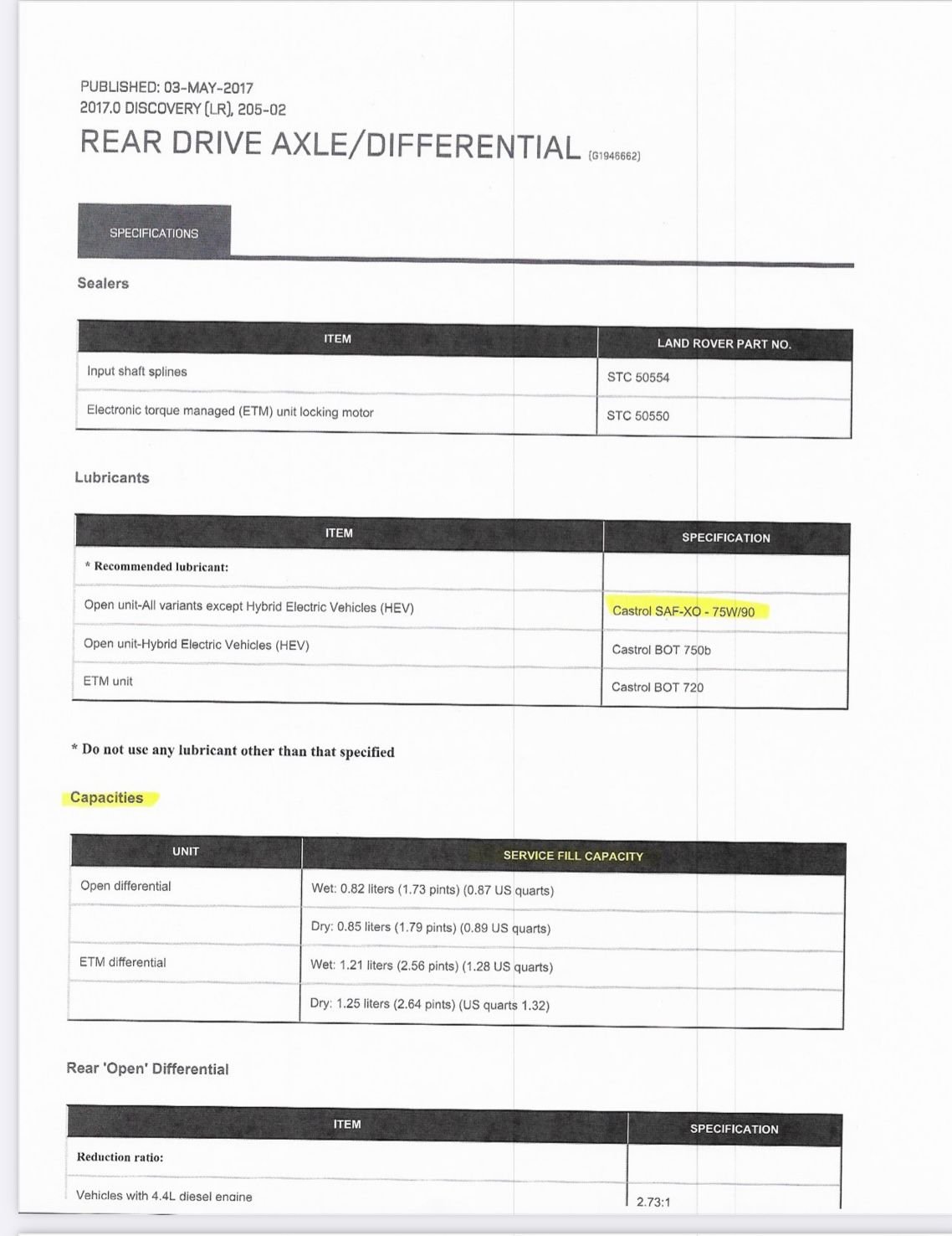 Hey all, looking to swap my differential fluids and transfer case on my 2017 D5 TD6 w/ 110,000 miles. I have the factory rear locker and I'm wondering how mandatory the Land Rover fluid is to use for the rear locker fluid swap? Also, any recommendations on easily accessible fluids that I could pickup at Advance Auto or similar local auto parts store that are good alternatives to factory recommendations for the front diff and transfer case? I'm not under any warranties so don't have to worry about voiding anything. Looks like I should be safe purchasing 2 qts of each?