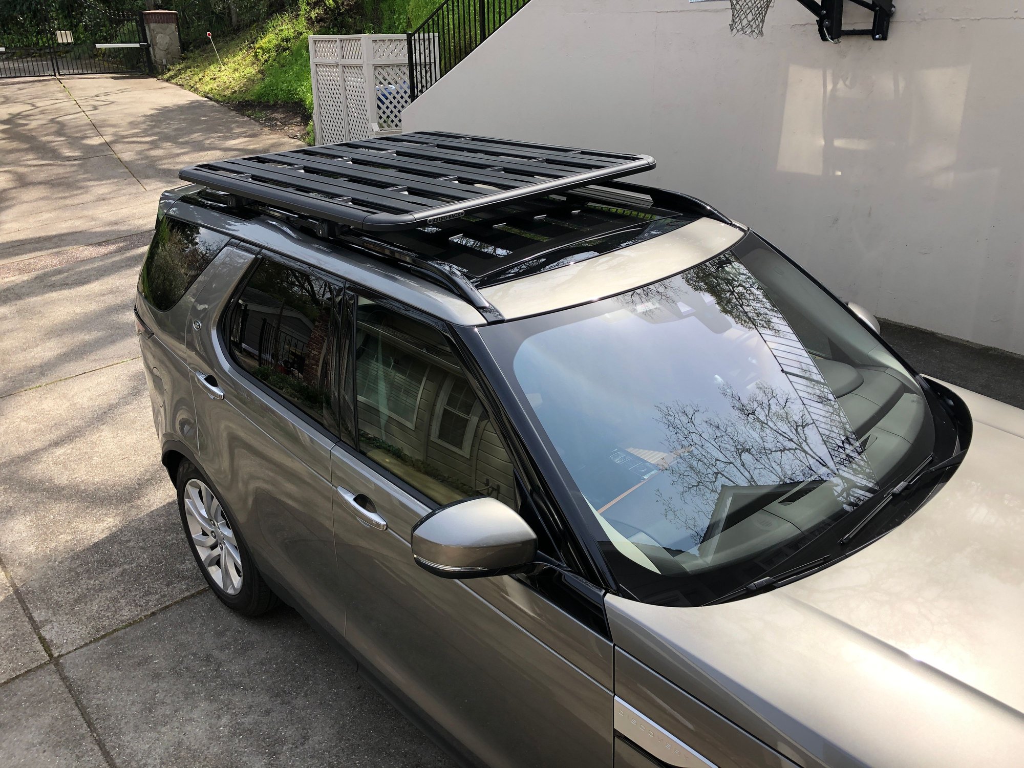 - Instead of trying to fit the legs first, I slid the cross bar of the roof rack into one leg and then hooked that on the Disco factory rail. Resting the bar on the opposite rail.