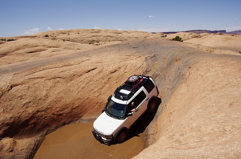My old LR3 in Moab, and my Series III Stage One, which I brought from Oz.