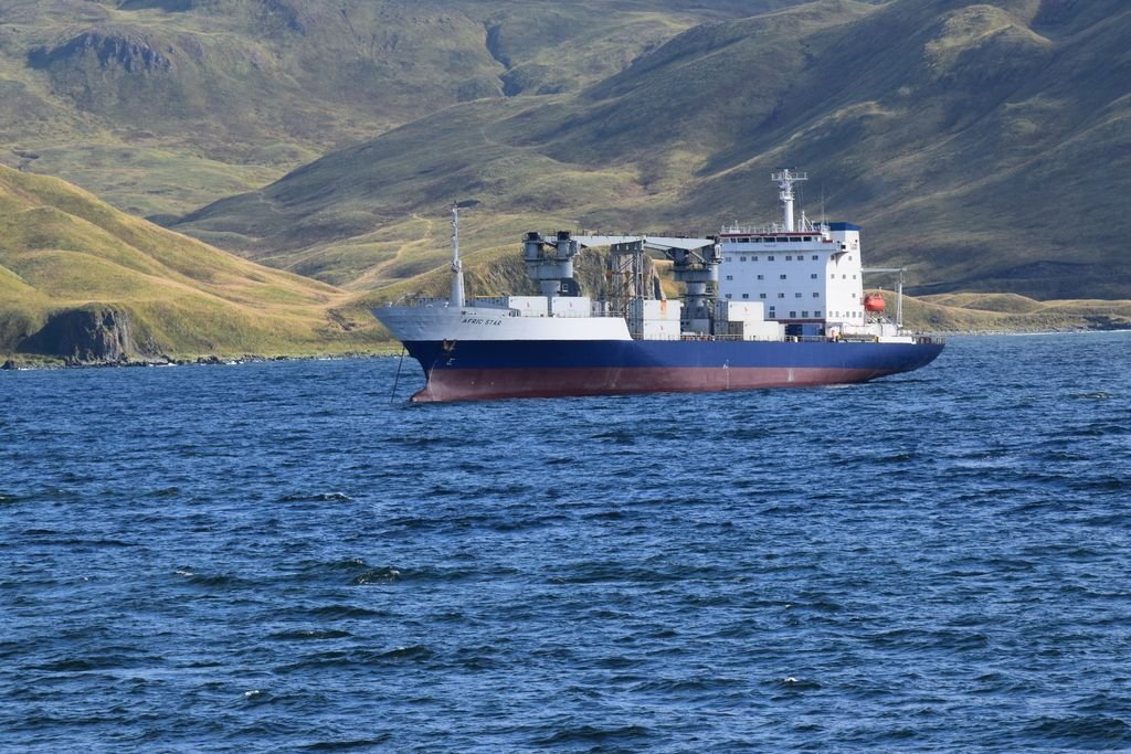 Early November 2015: Winter and final offload of the season. Big storm just passed and the harbor was full of other vessels so we had to anchor in a nearby lonely bay for the night.