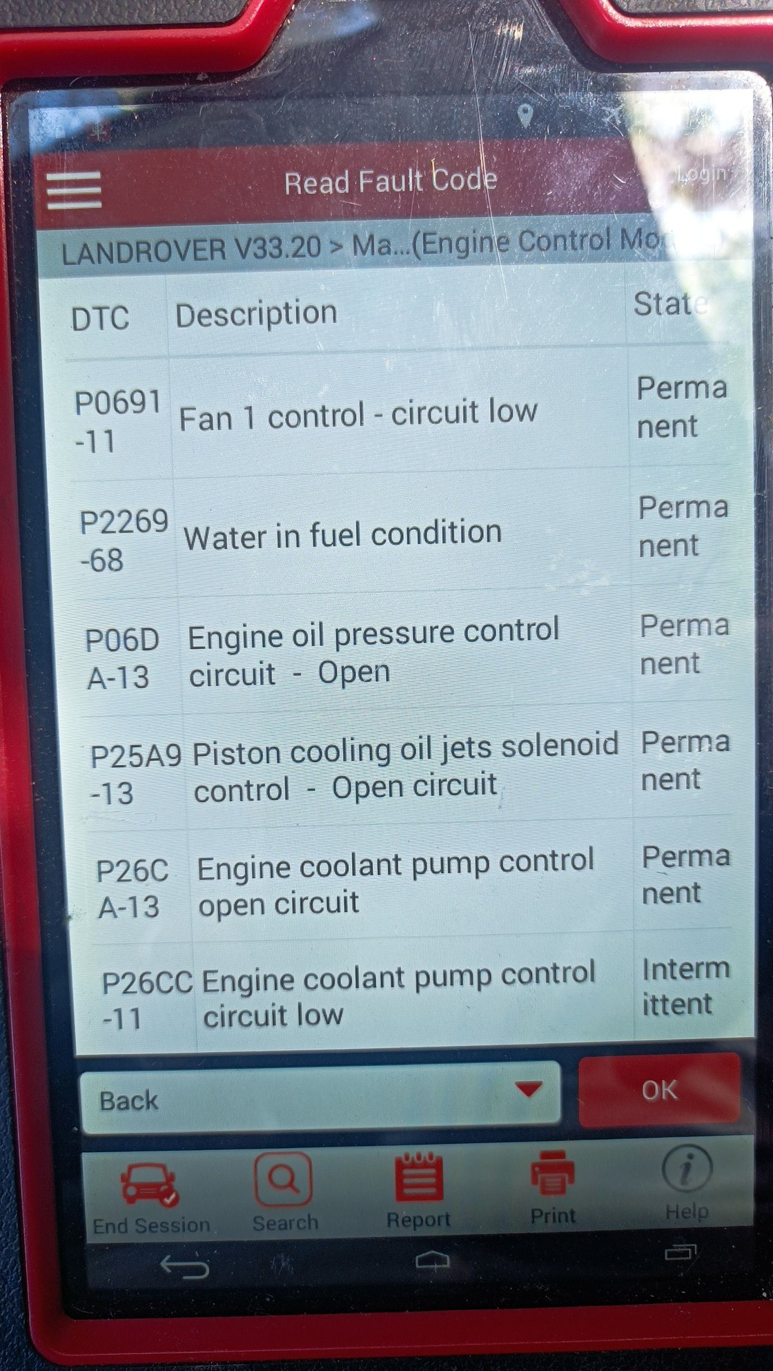 Hi all, hope you can help - initially my car came up with water in fuel alert and red, restricted performance alert. I first drained the fuel filter and found no water. I then replaced the fuel filter assembly including new water sessor. Both alerts remained. I used a scanner to find a number of permanent codes as shown in the photo. I then found that the thermostat housing was leaking coolant , dripping onto the oil solenoid below. Now I have replaced the oil solenoid and thermostat housing , but I cannot get the permanent codes to clear. The first picture shows codes with ignition on only, the second shows codes after start up. I have re-checked all connections. Any help would be appreciated.