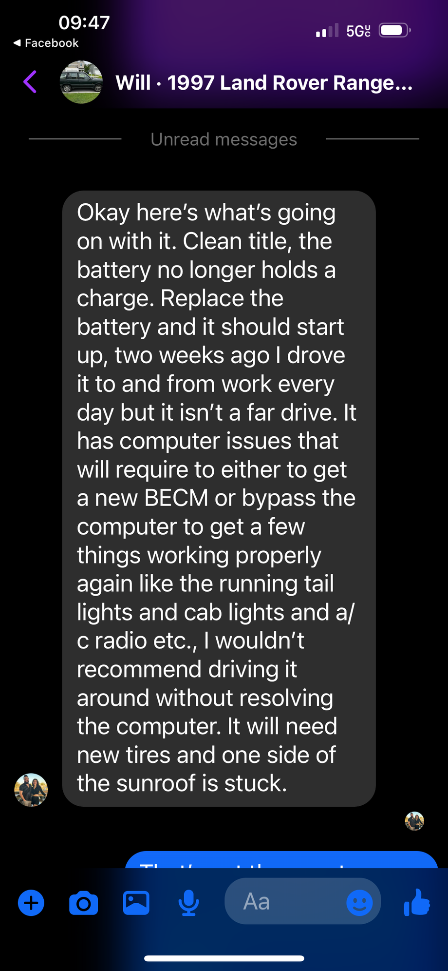 So we arrived I looked around it hooked the jump pack up, had him start it so I could listen to the motor on cold start, had him pop in drive and reverse. Made the deal for $450 He asked if I needed a hand loading it on the trailer so he drove it up while I guided him. I hooked up got on the road without having driven my new to me P38🤣. The only way to buy a used Land Rover if you ask me 🤣 |