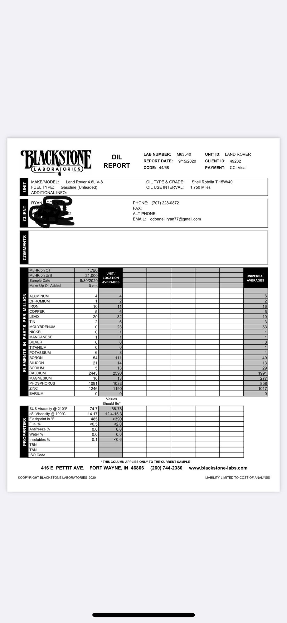 When engine first installed, blackstone showed high levels of lead. The levels have continually declined at every oil change. September oil change report attached.