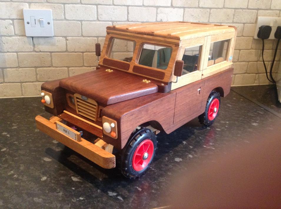 I am a very keen Land Rover fan. As a hobby I make model Land Rovers. I currently have a Land Rover County V8 Model made of oak and mahogany for sale.