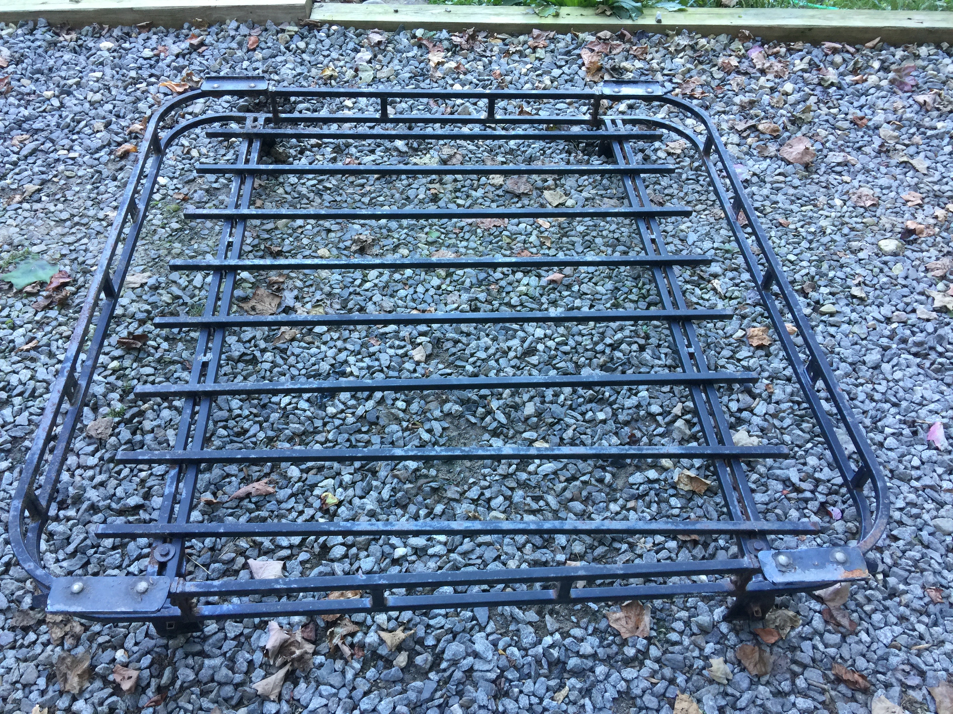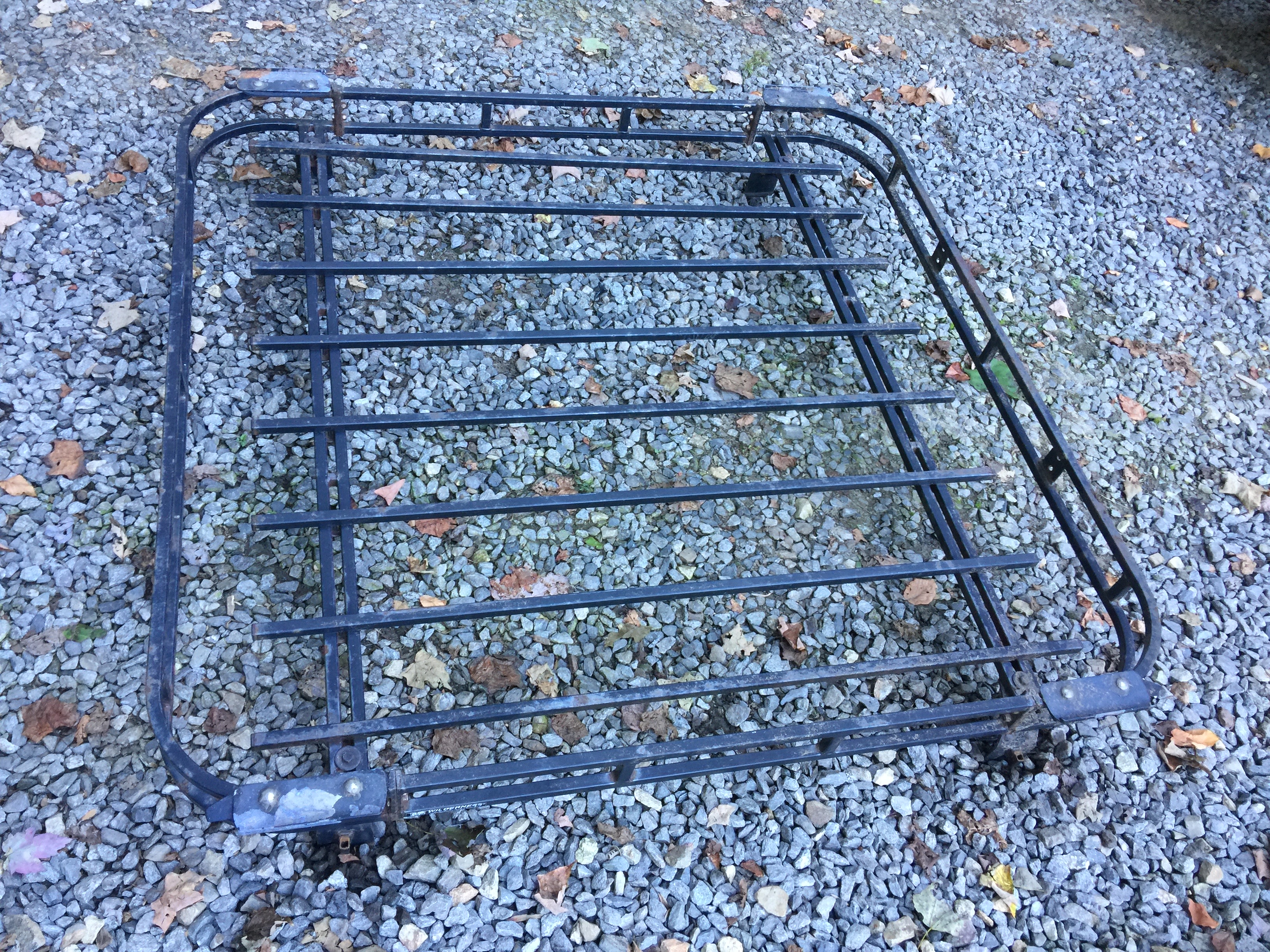 The Garvin Wilderness roof rack is a little rough with some rust around the edges but with a little work, will quickly reveal that it has many years of good use ahead of it. It comes with the mounts to secure the rack to the roof rails. It was originally on a '95 LWB but will work on either LWB or SWB. Its 60"x60" and had a relatively low profile when installed. This is the earlier version of their Wilderness roof rack, not the current "sport" version.