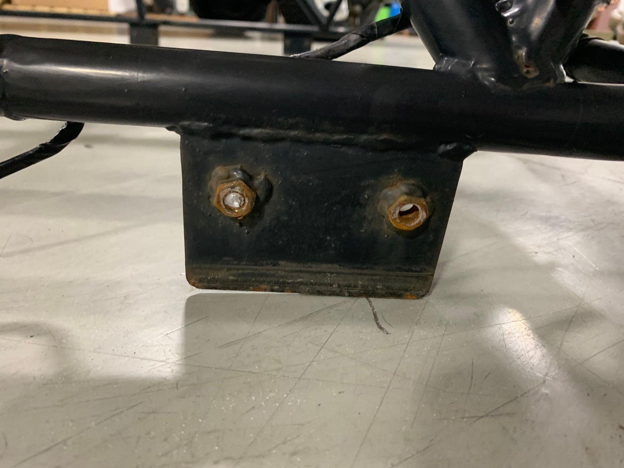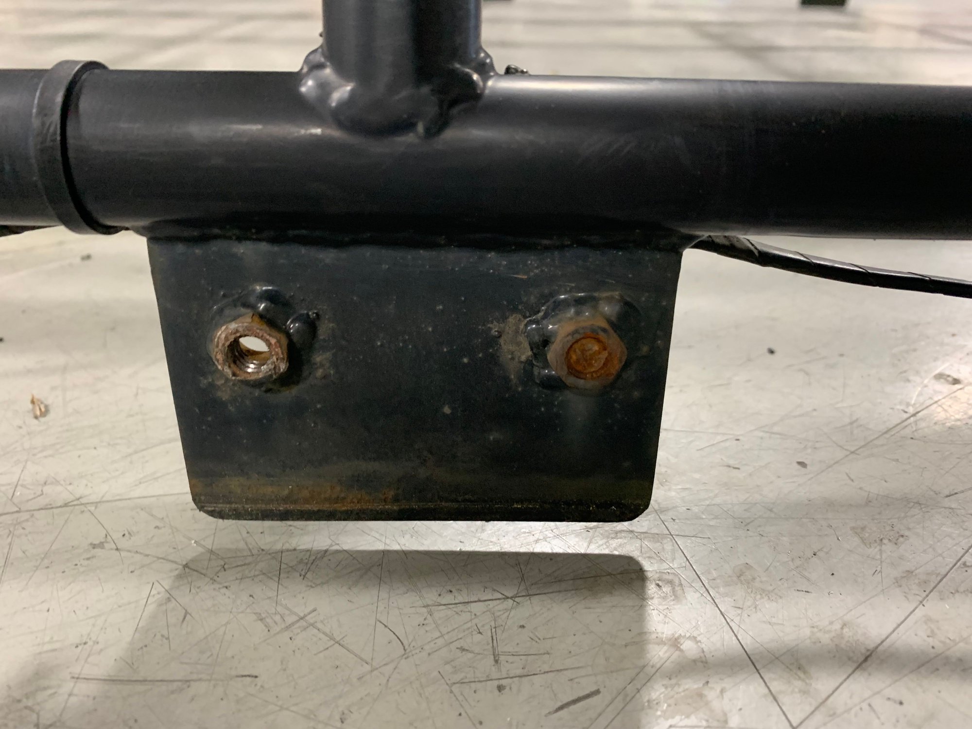 The rack has surface rust and 2 of the 16 mounting holes will need to be re-drilled because the bolts sheared off inside the hole. The rack is strong enough and the mounts secure enough to use as is. However, I would recommend stripping+repainting the rack and buying new hardware.
