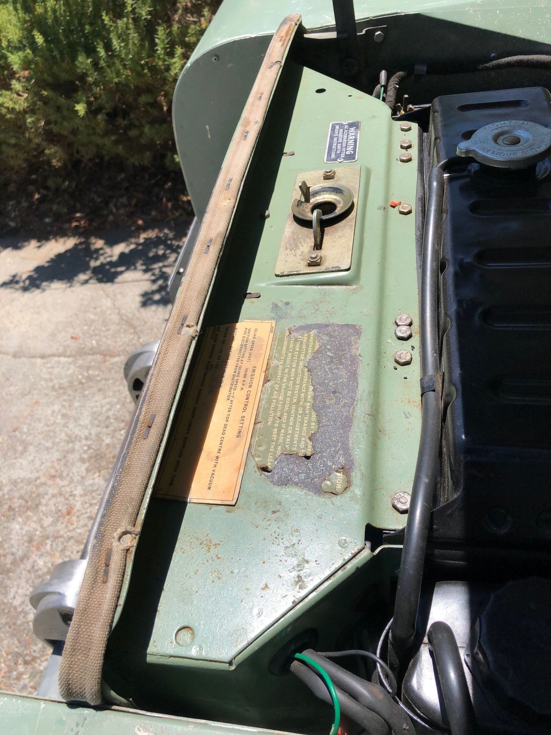 Am in California and just bought a '69 88 IIa in New Mexico. In order to register it in CA I am told they will need to see the US Emissions Label attached to the vehicle. NM has no similar emissions requirements. Assuming it is no longer on the vehicle, and Land Rover cannot supply one, can anyone supply a picture and tell me where this would be located on the vehicle? Also, has anyone had to go through this process? I figured since it was a '69 and CA does not require smog checks for vehicles '75 and older there would be no smog requirement. Thanks.