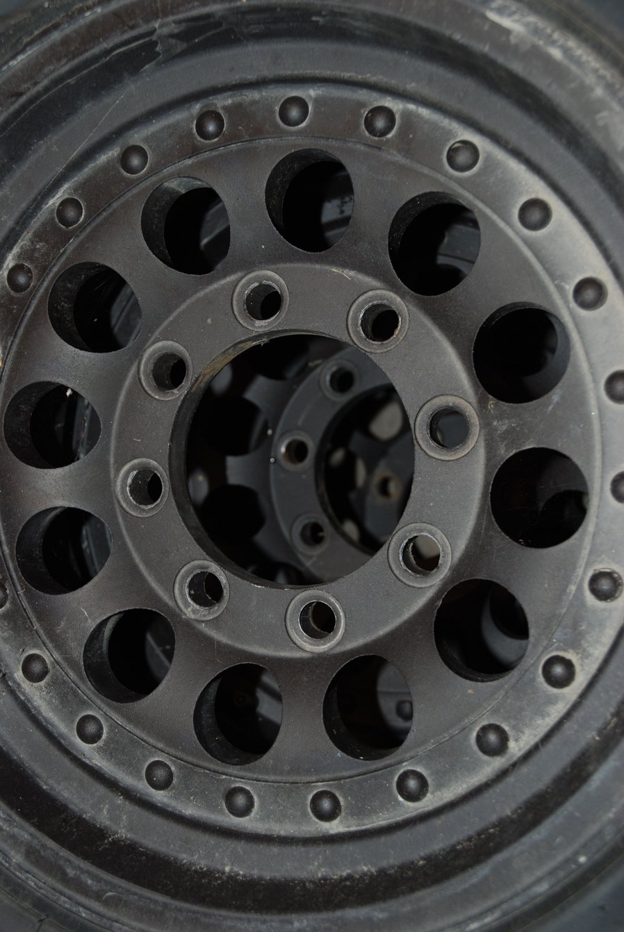 Black wheels, pretty anonymous, but there are some imprints on the back side: "MAX WHEEL", "7x16", "LOAD 2100 LBS", "A.E.W.C."